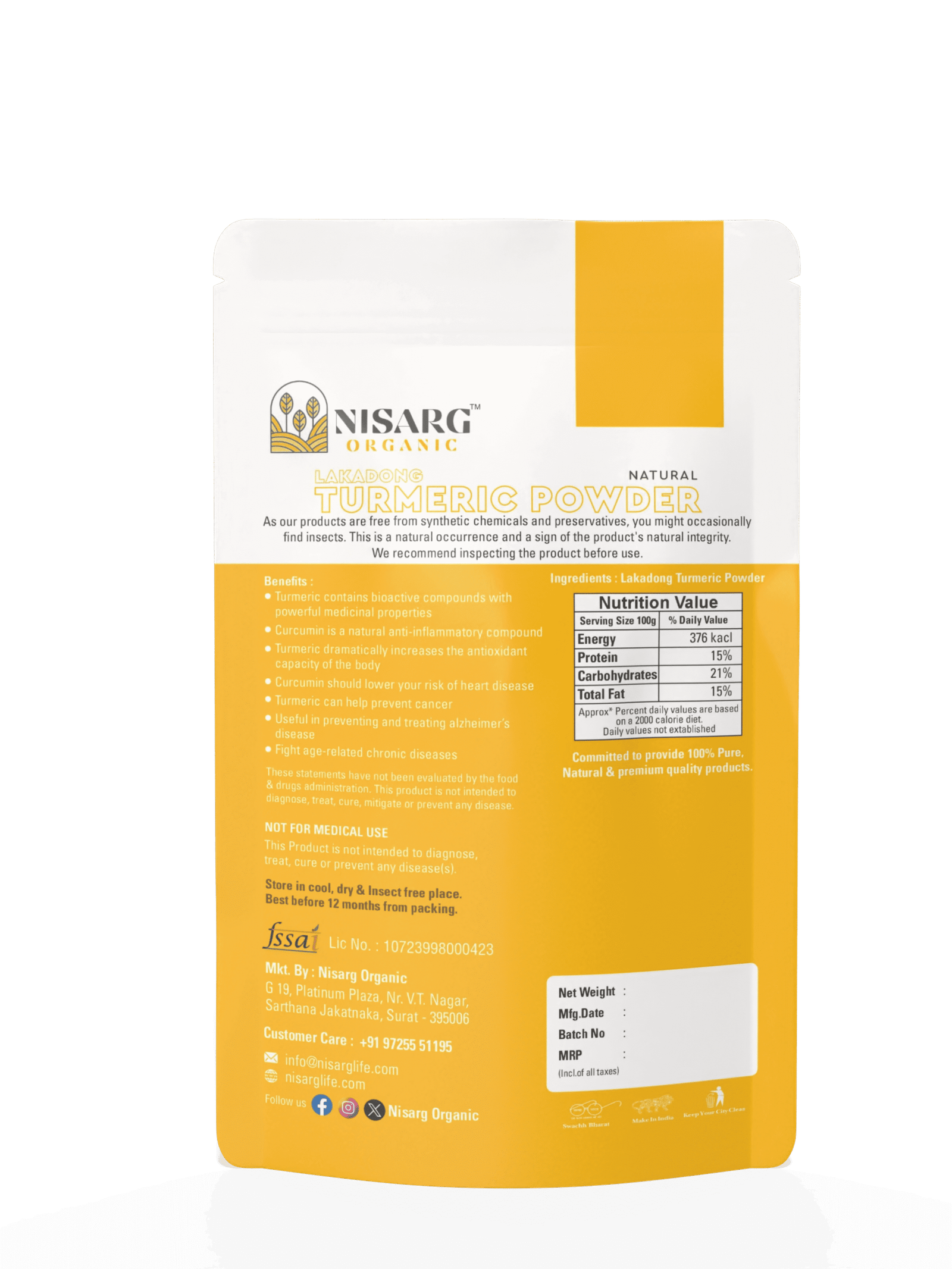 Nisarg: Lakadong Turmeric (250g) 300.00